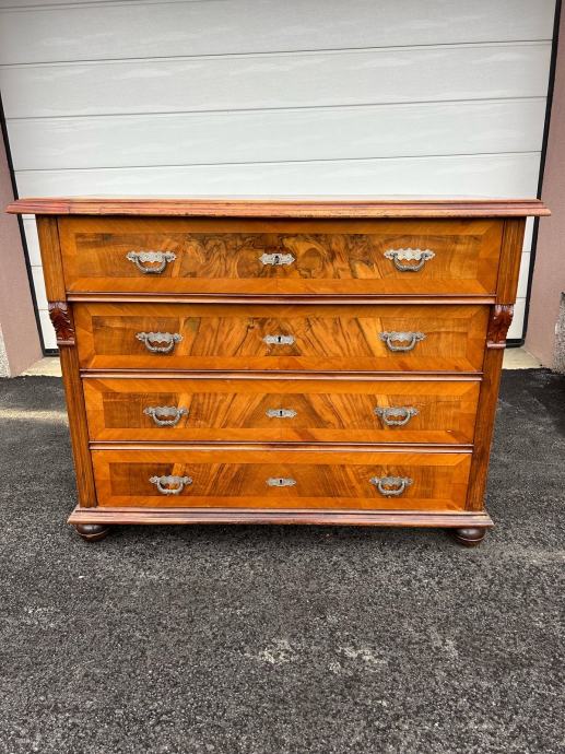 Alt deutsch komoda u vrlo dobrom stanju, restaurirana prije 10ak godina. Komoda je furnirana orahovim furnirom i ima krasne originalne ruckice.