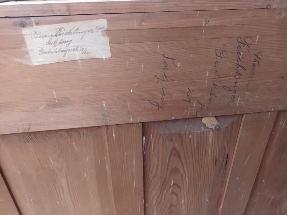 Detalji: Ima ukrasne mjedene okove na vratima i ručkama, a neki slični primjerci mogu imati i mramornu ploču.