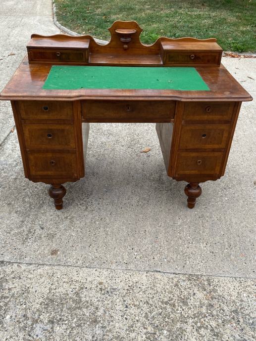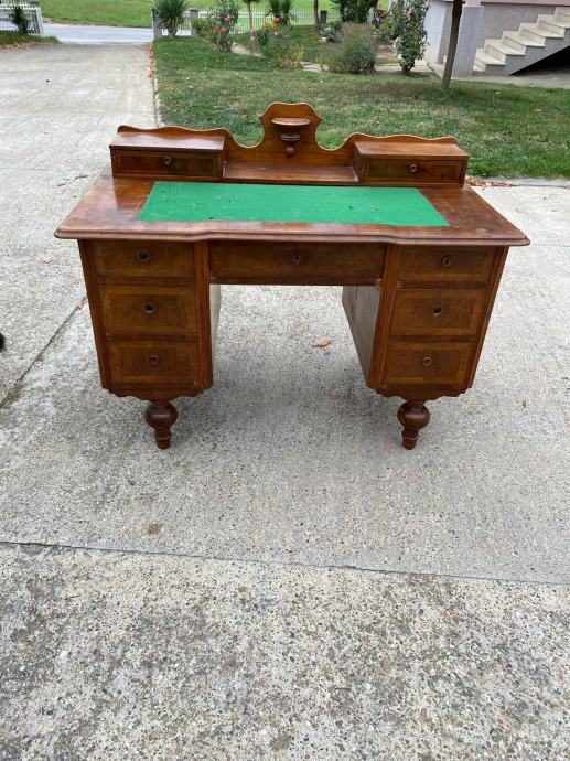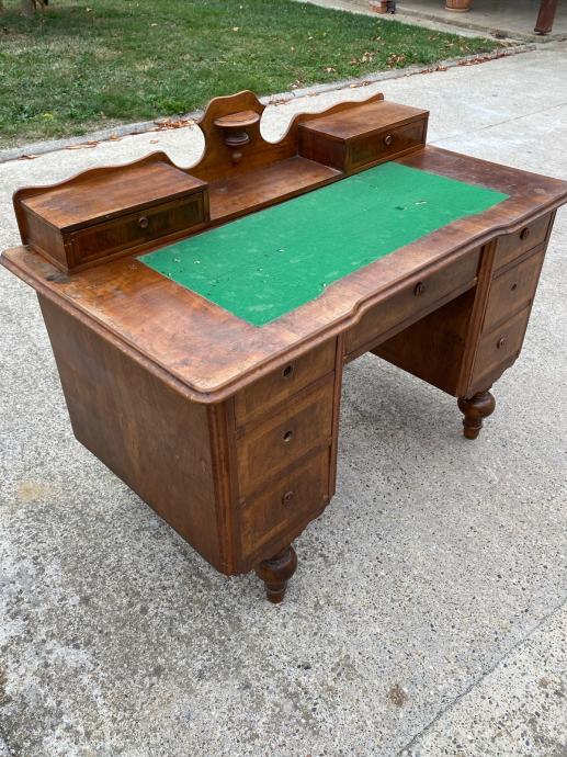 Alt deutsch radni stol u vrlo dobrom stanju sa lijepo tokarenim nogama i krasnim orahovim furnirom.