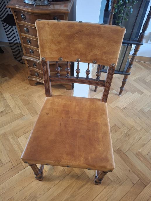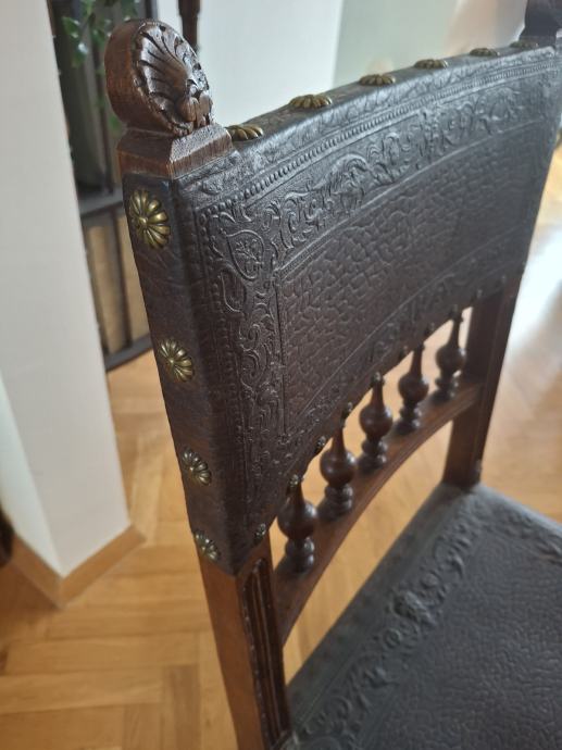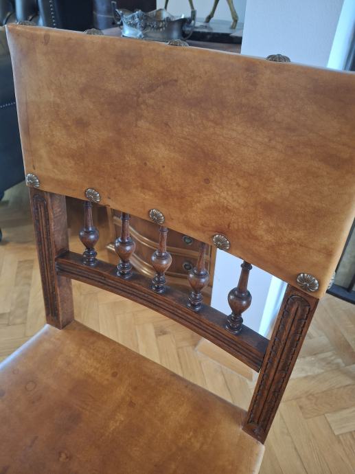 - stolac boje čokolade, s reljefnom prešanom kožom na naslonu i sjedištu - na prvim fotografijama (1 kom., a pojedinačno za 130 €)