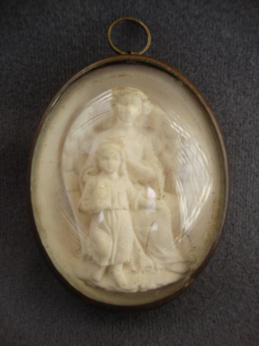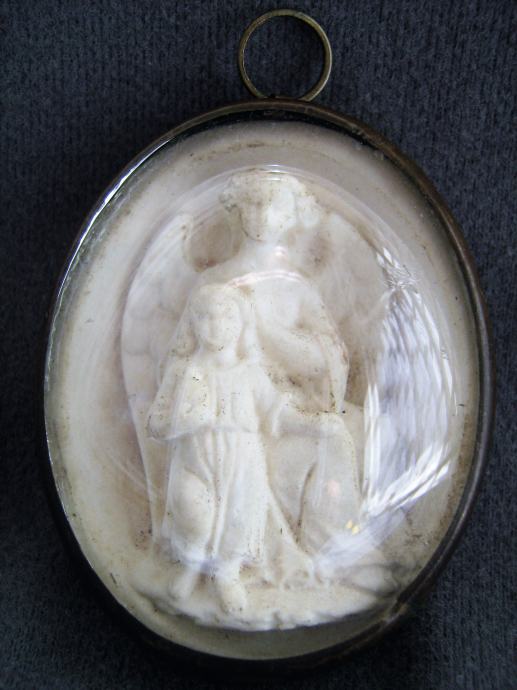 ANGEL GABRIEL RELIQUARY PENDANT - ANTIQUE OVAL - PRIVJESAK RELIKVIJAR