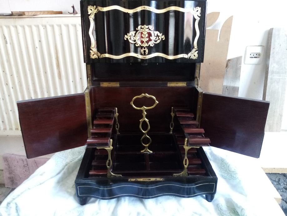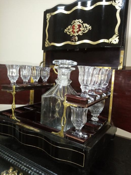 Liker bar Napoleon lll 1860 intarzije mesing nedostaju 3 boce i 5 čašica