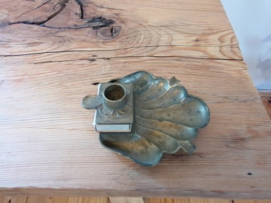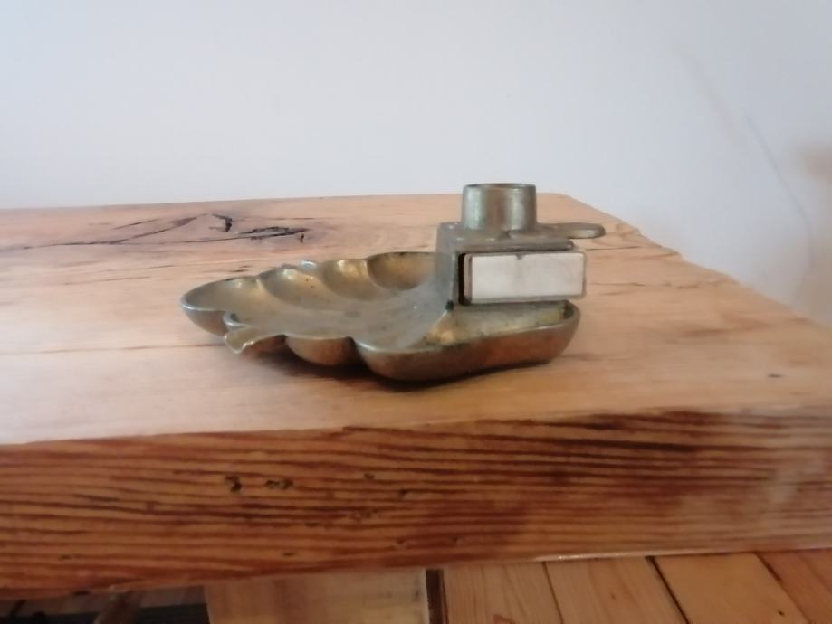 Antik pepeljara sa držačem za šibice. Mesing. Dimenzije 14x13 cm. Dobijete predmet sa slika.