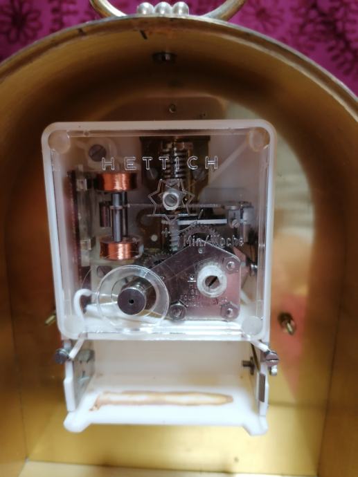 Lijepi antik sat marke Hettich. Mehanički pogonjen baterijom. Dimenzije 20x6x14 cm. Dobijete predmet sa slika.