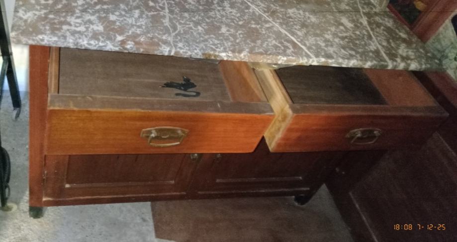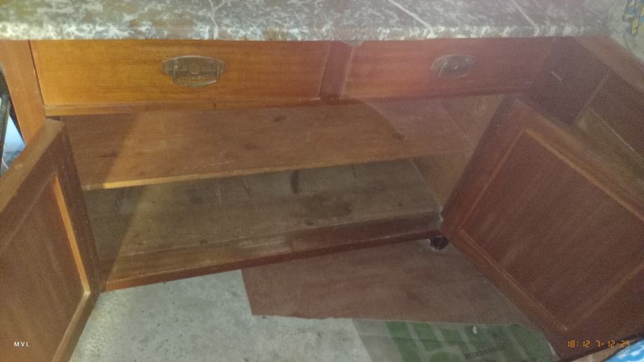 Komoda je od punog drveta, rađena po narudžbi u Trstu krajem 19. Ili početkom 20.st. Obiteljska ostavština. Može se pogledati uz prethodnu najavu pozivnom, na poruke ne odgovaram.