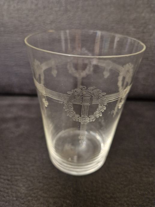 Prekrasne i elegantne gravure ( teško poslikat), visina 10 cm a promjer otvora 7.3 cm. Perfektno stanje.
