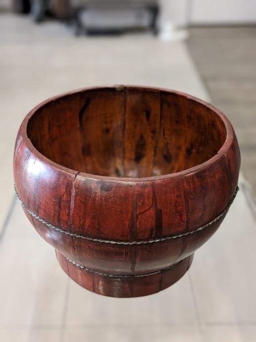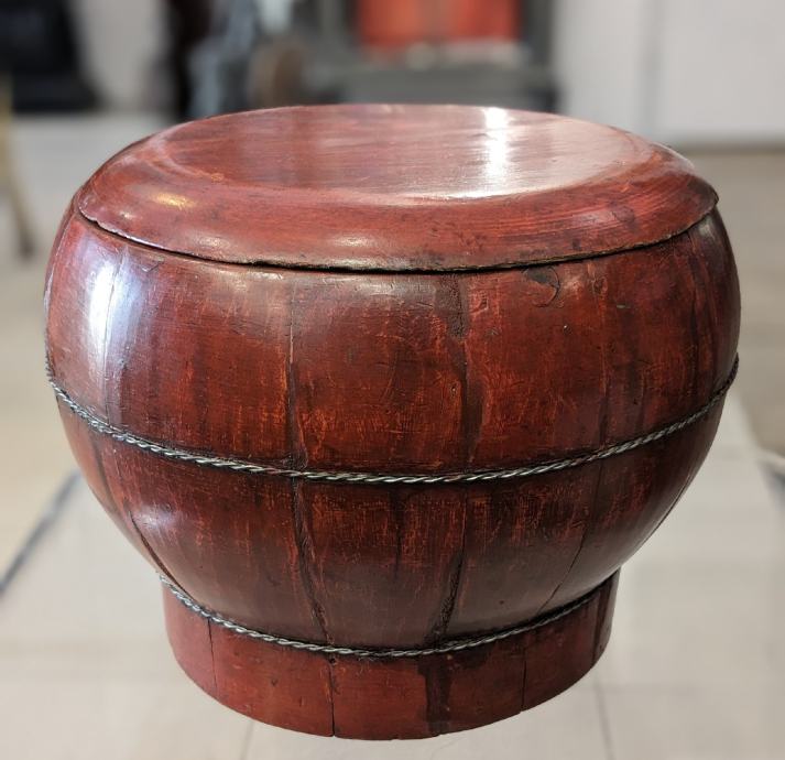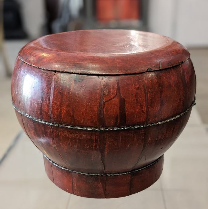 Antikna Kineska crveno lakirana drvena posuda za rižu iz 19. stoljeća. U vrlo dobrom stanju, vidljiva tek pokoja manja krhotina na poklopcu.