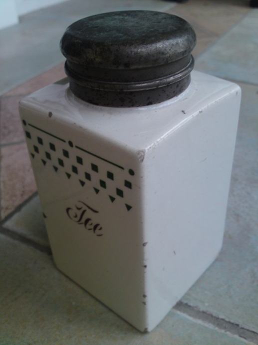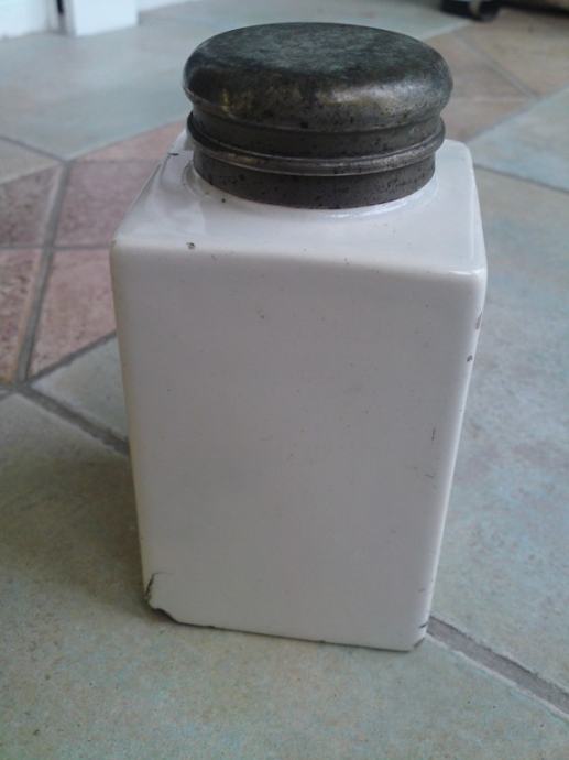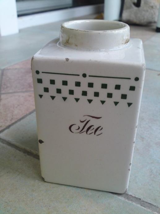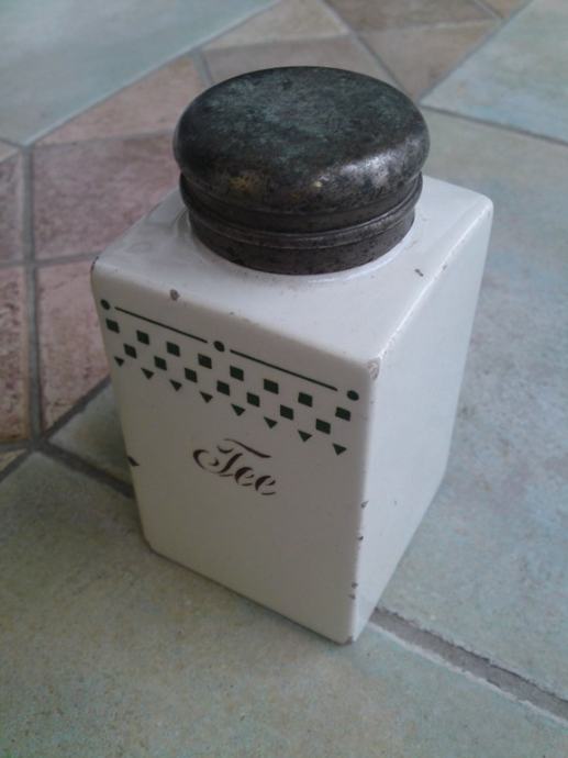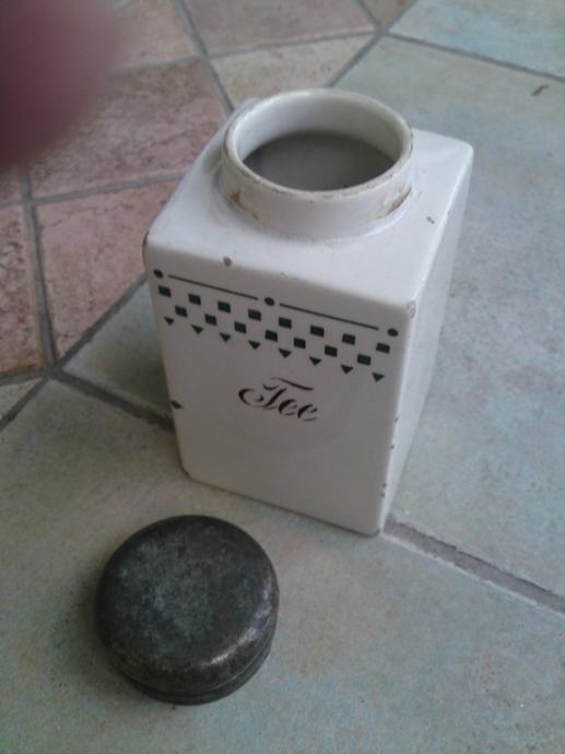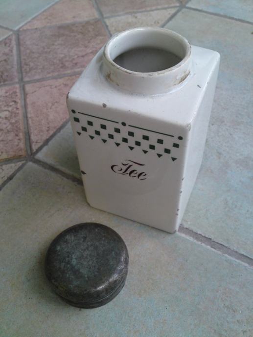 STARA PORCULANSKA POSUDA SA ALUMINIJSKIM POKLOPCEM IZ 1905. g. ZA DRŽANJE ČAJA, U ODLIČNOM STANJU.