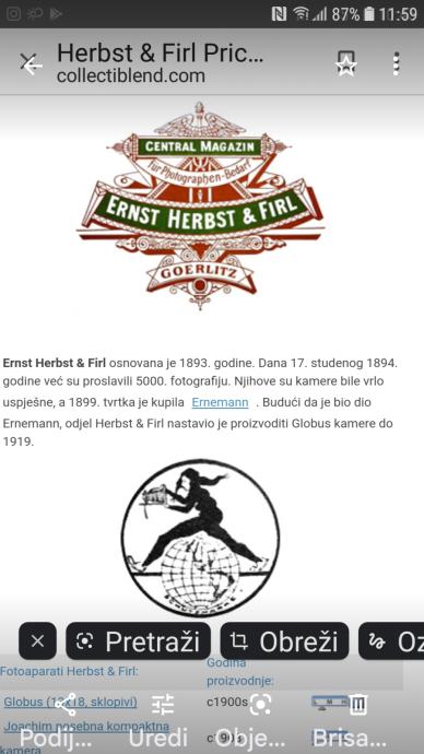 Prodajem muzejski primjerak antikne studijske kamere poznate radionice Ernst Herbst @ Firl, Goerlitz, izrađene u periodu od 1893-1899. godine, sa objektivom Portrait Anastigmat 1:4,5 F 480mm No 59314, Voigtlander @Sohn.