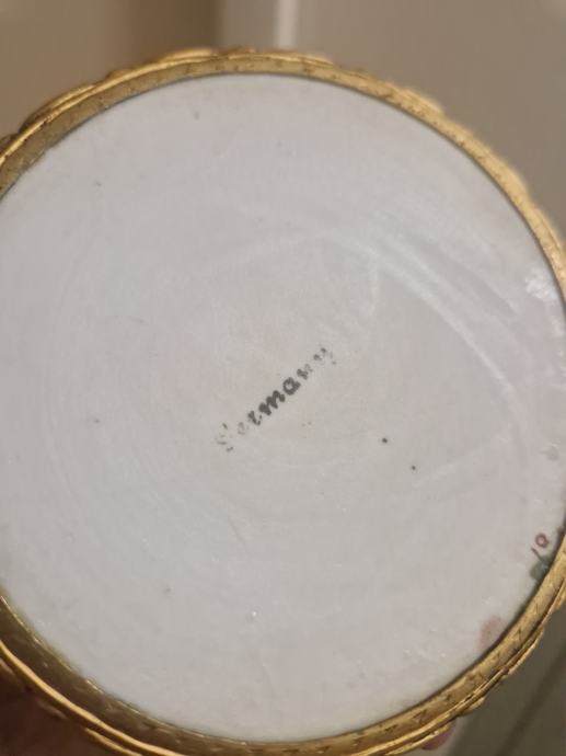 Vrhunski stari rad, s obzirom na starost od preko 100 godina u solidno stanju, antikni njemački porculan, .. širina oko 9 cm, visina oko 7 cm...inače su puno puno skuplje...poruke na whatsapp