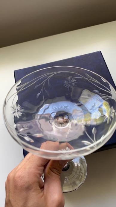 Prodajem prekrasne tanke antikne kristalne čaše za šampanjac. Čaše su vrlo tanke, elegantne i po njima je brušen motiv cvijeta i lista