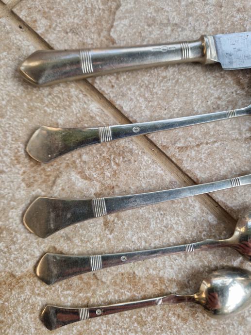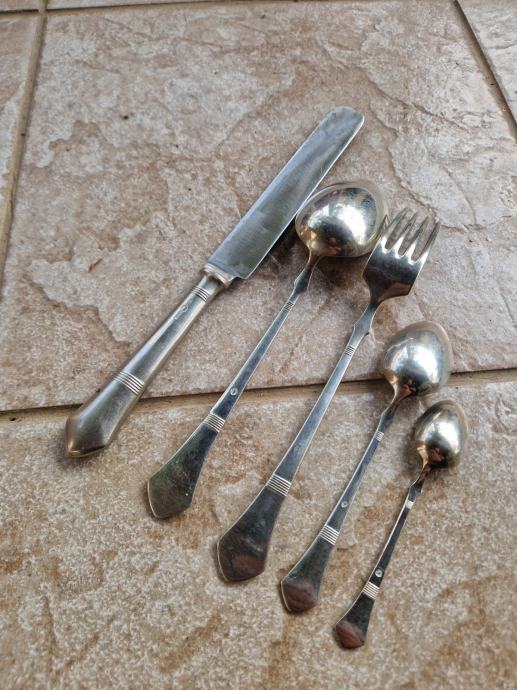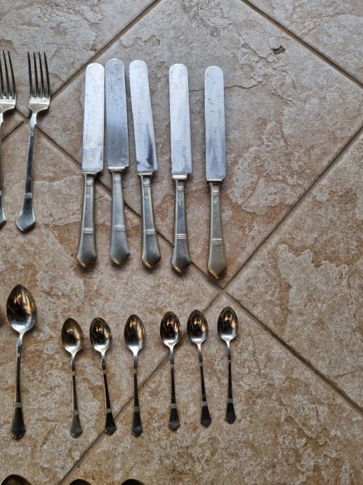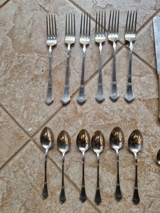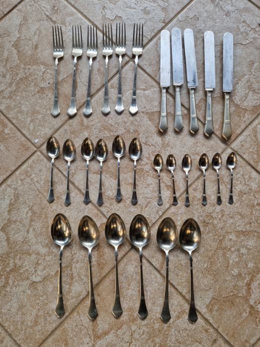 Set se sastoji od 6 velikih žlica ,6 velikih viljuški ,5 velikih noževa ,6 malih kašika i 6 kašikica za čaj i kavu