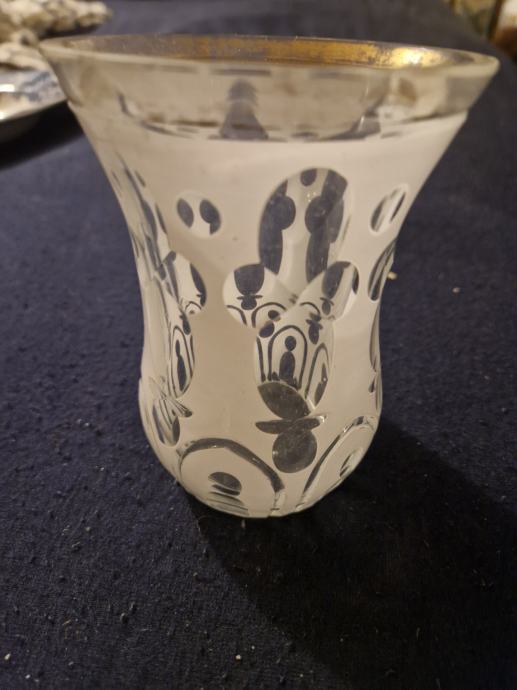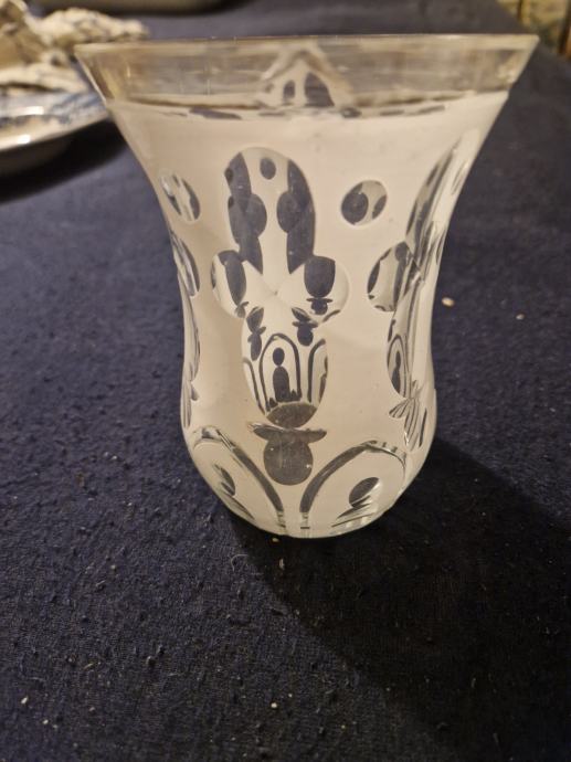 Visina oko 11.5 cm, otvor oko 9 cm...na gornjem rubu okrhnut ( poslikano) pa je ovakva cijena...poruke na whatsapp