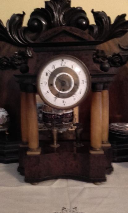 Sat je u izvornom stanju bez popravaka osim stupova koji su premazani nekim lakom. Nažalost sat bez originalnog klatna ("Sonne pendel"), navijanje na 3 ključna mehanizma. Ima tri navojna mehanizma koji se popularno zovu tzv. "Virtilica" (Ein Viertel Uhr).