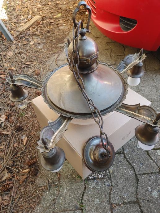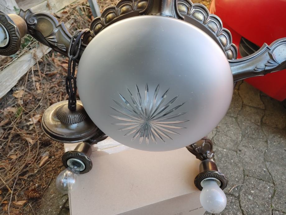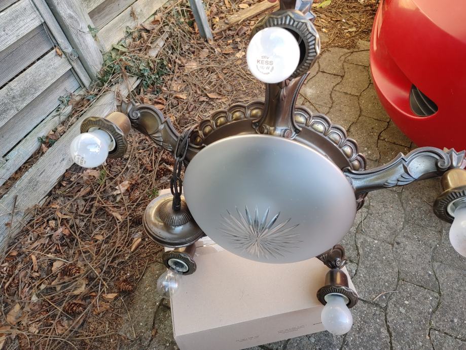 U funkciji.Original staklena lampa.5 krakova.oko 60 cm promjer.Molim zainteresirane da se jave sto prije jer moze u utorak biti u Zagrebu