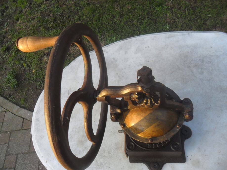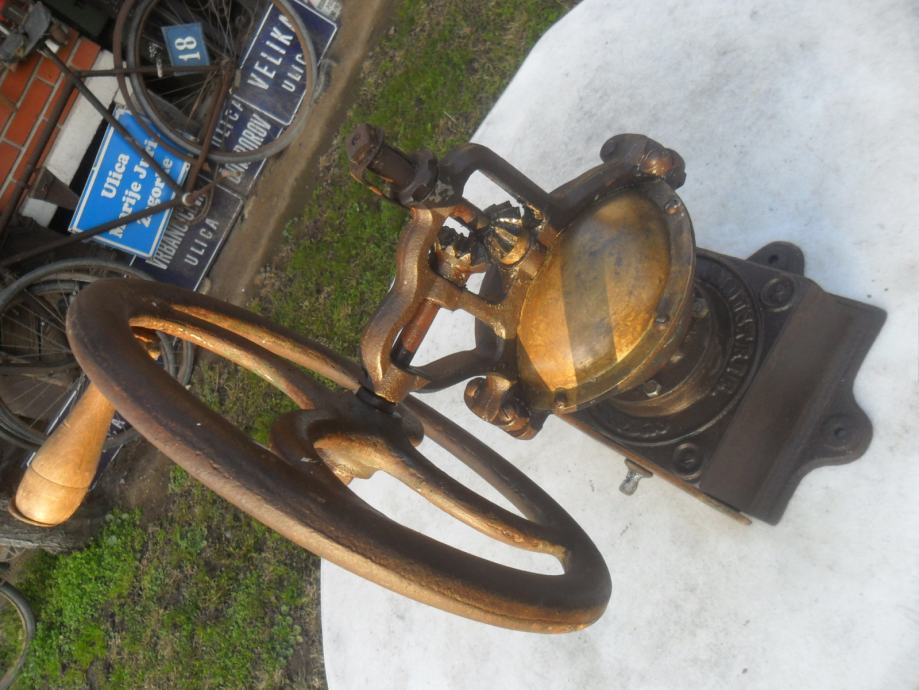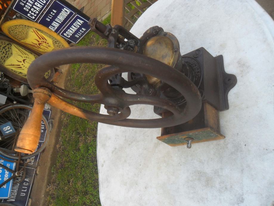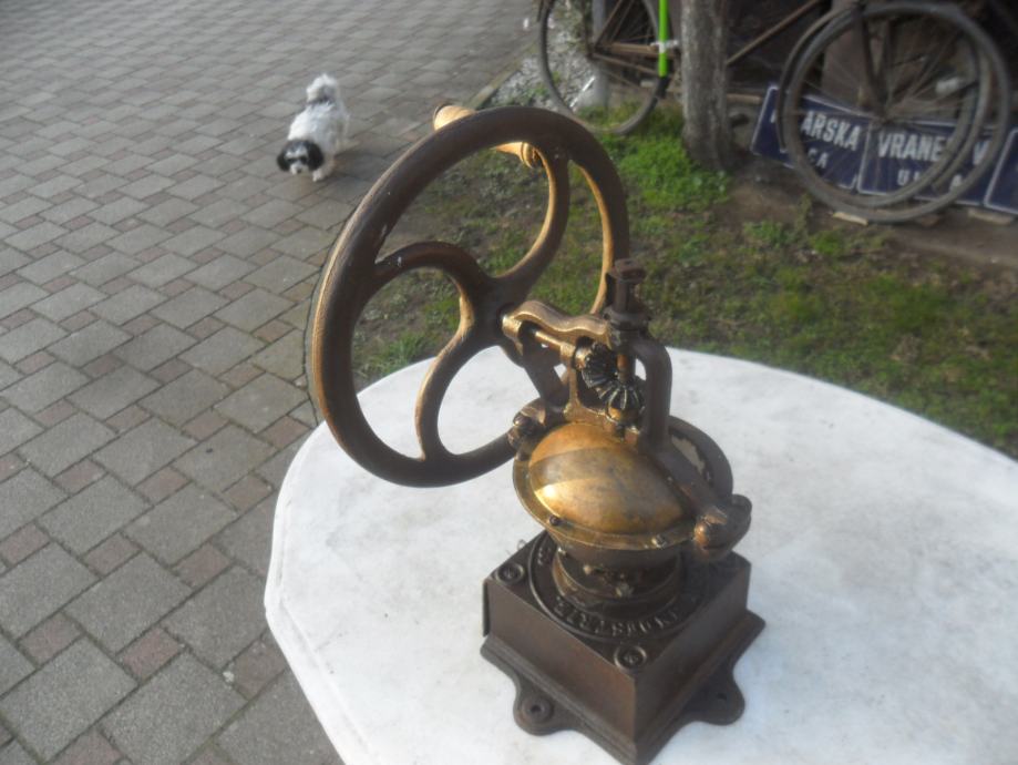 prekrasan stari mlinac za kavu, po nakim podacima sa interneta datira negdje od 1850 god.dosta masivan,posebno atraktivan za uređenje prostora ko voli starine,dimenije su..visina je 40cm,,postolje 23 x 20cm,promjer pogonskog kotača je 30 cm...imam još desetak manjih mlinaca koje možete pronači surfajuči moje ostale oglase starina i antikviteta