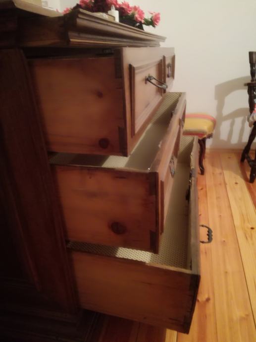 Prodajem više komada antiknog namještaja: ormar, noćni ormarić, komodu.