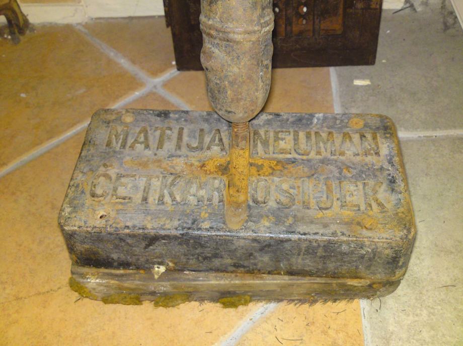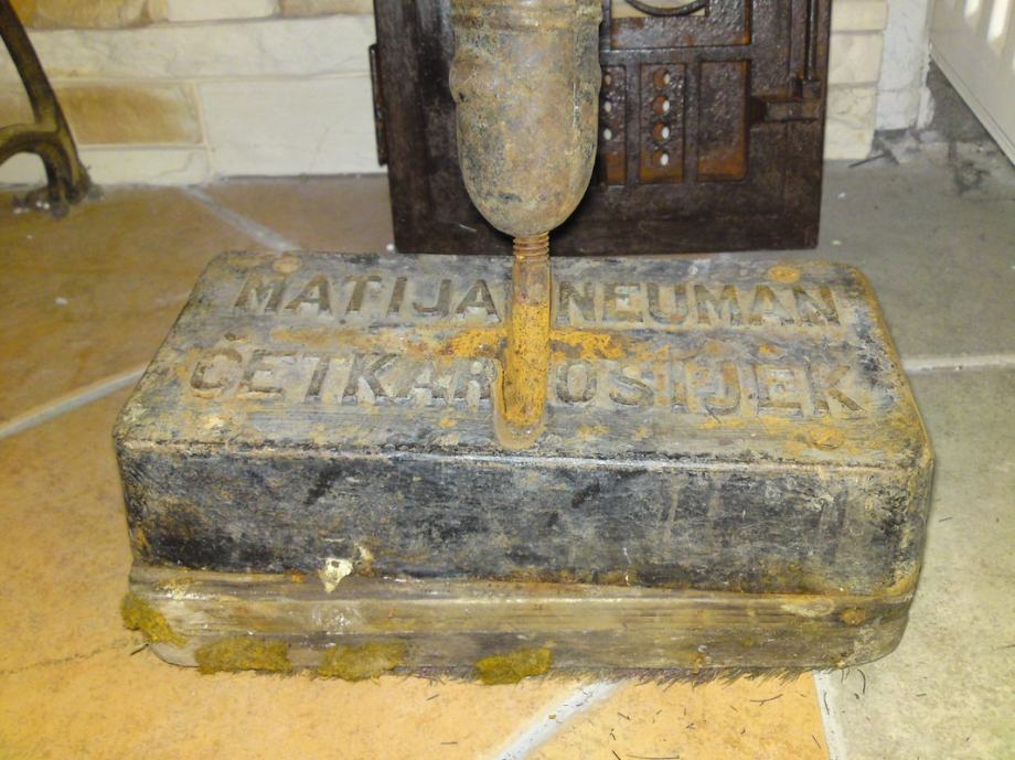 Stari ručni čistač i glanzer podova, veće težine, iz 1905.g. u izradi poznatog osječkog četkara Neumanna, u odličnom stanju.