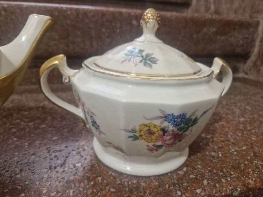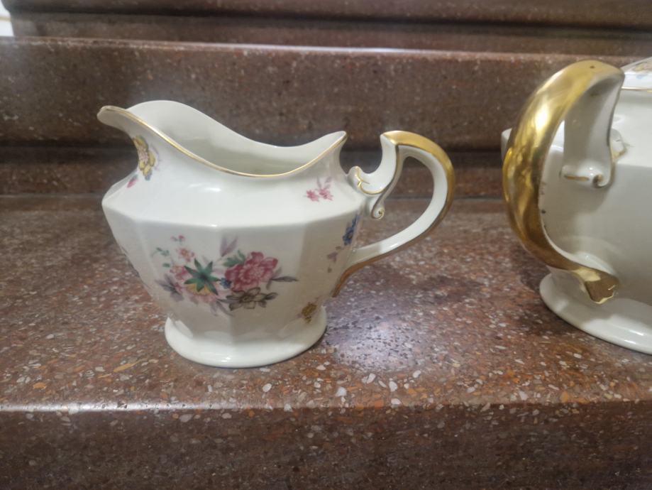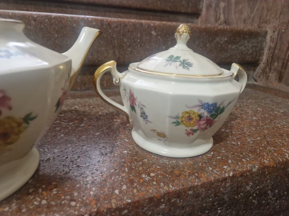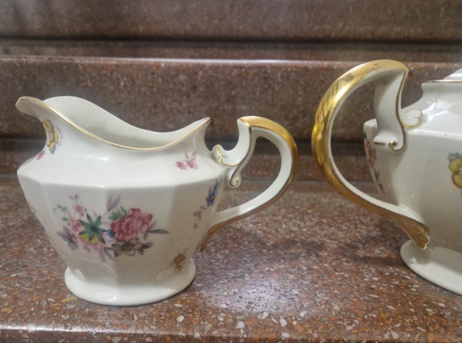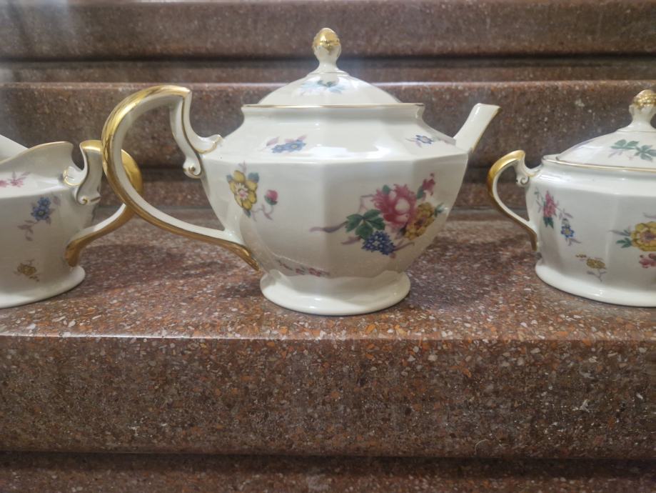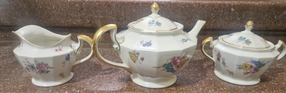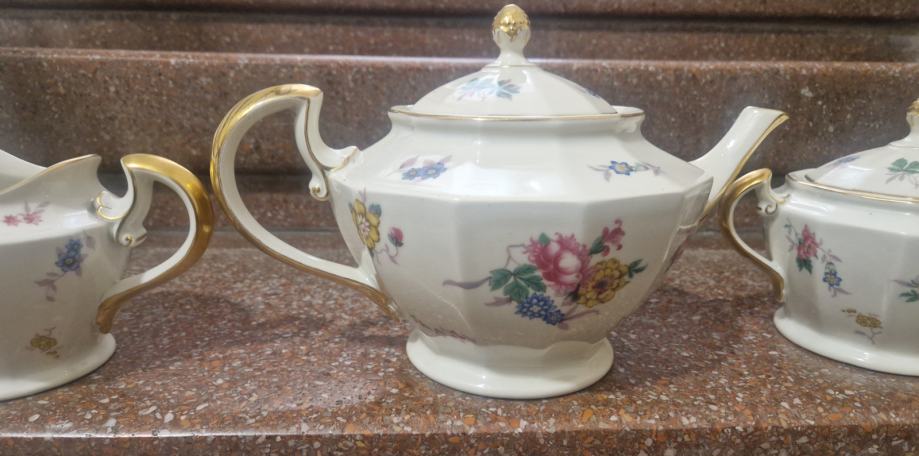 Prekrasan ukrasni porculan, vrhunskog proizvođača, star preko 100 godina. Sastoji se od velikog čajnika, posude za mlijeko i šećer. Cijena se odnosi na sva 3 komada. Poruke na whatsapp..