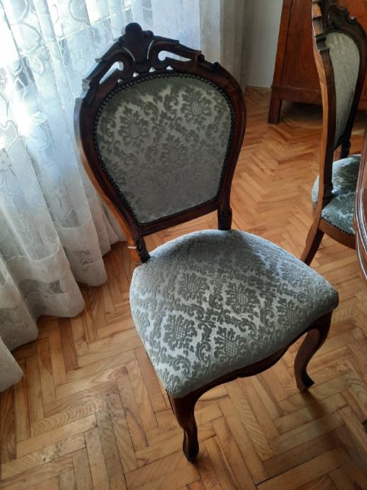 Stol sa šest stolica 116cm,rastvoren165×128×77cm.U odlicnom stanju.Sve puno drvo.