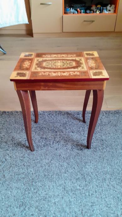 Bidermajer , Jozefinski stolić sa glazbenim mehanizmom u izvanrednom stanju . Dimenzije 43cm visine , dužine 36cm i širine 27,5 cm