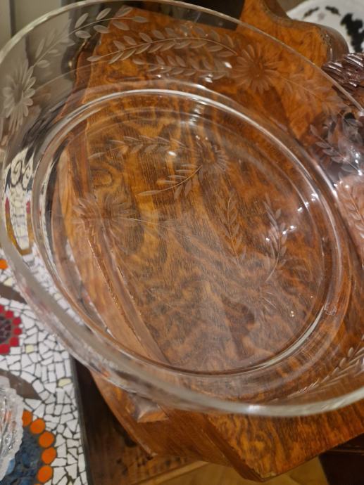 Dno 16.8 cm...gornji vanjski promjer 20.2 cm....prekrasne gravure i super stanje s obzirom na starost....mesinganih dijelova se nađe, staklo teže...poruke na whatsapp...