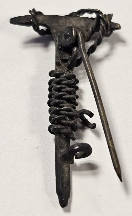 AntiknI srebrnI broš u obliku sidra s omotanim lancem, ručni rad, jadransko područje (19. – početak 20. stoljeća).