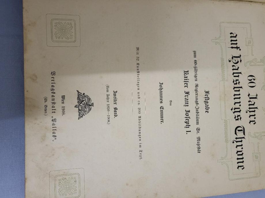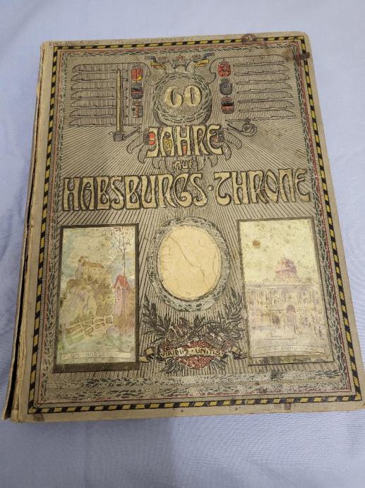 Stara antikvarna knjiga iz 1908. godine: "60 Jahre Habsburg Throne"/ "60 godina Habsburškog prijestolja", cca 350 stranica, puno slika uljučivo i poster o obitelji Habsburg,