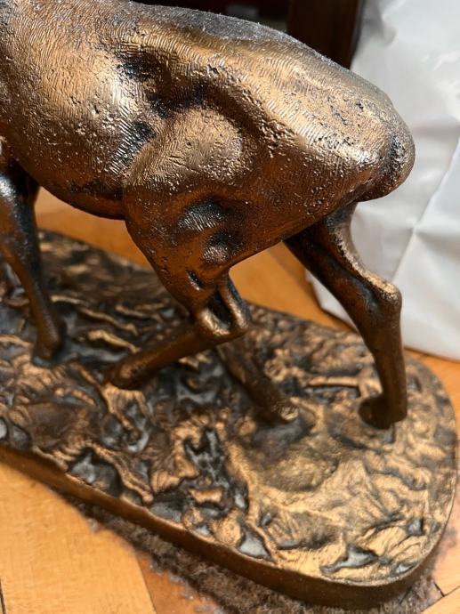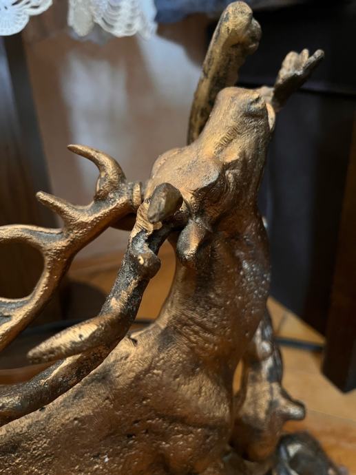 Prodajem autentičnu masivnu bronzanu skulpturu jelena, evropskog porijekla, izrađenu krajem 19. ili početkom 20. vijeka (cca 1880–1920).