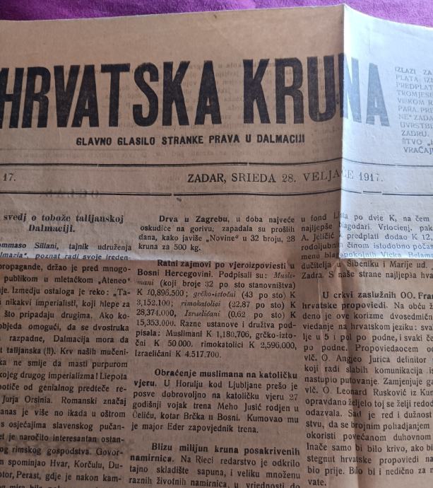 Hrvatska kruna - glasilo stranke prava u Dalmaciji ,brojevi 17 i 19 iz 1917 god.