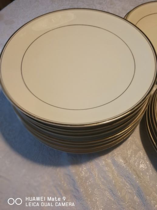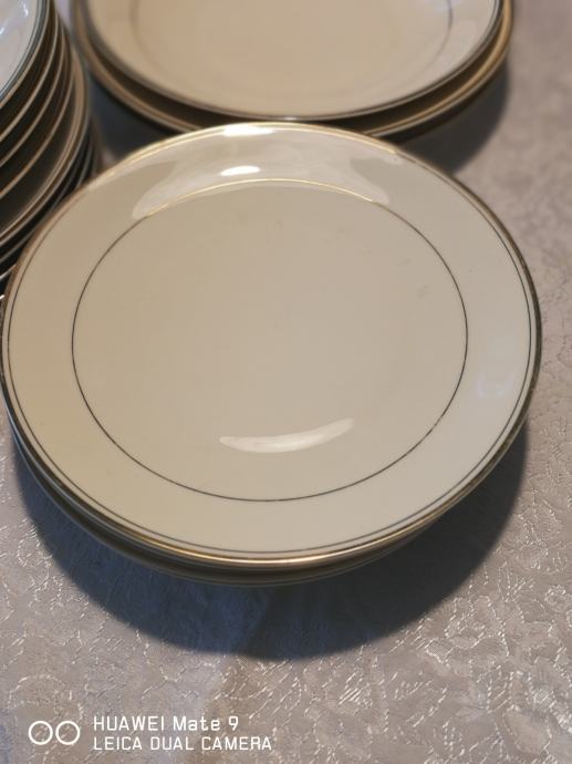 Tanjuri su boje slonovače , obrubljeni zlatom.Set se sastoji od: