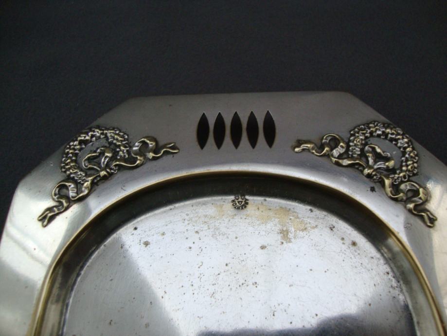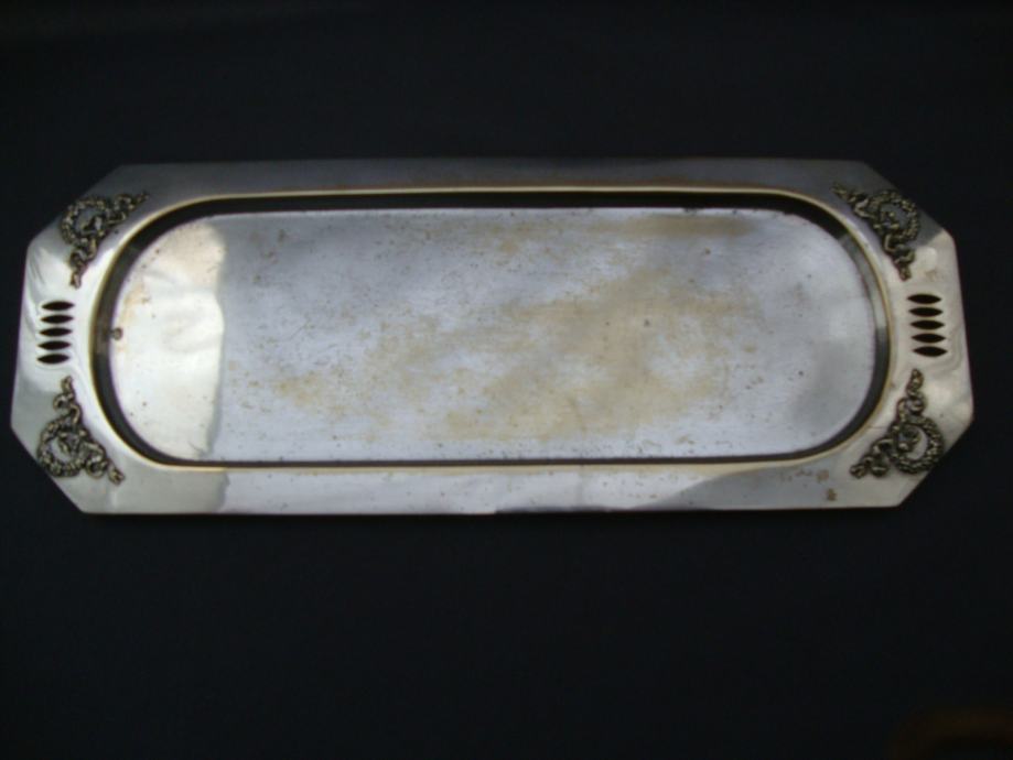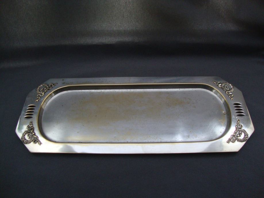 Bečki poslužavnik ,tacna posrebrna dezen secesijski vijenac mašna