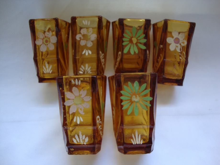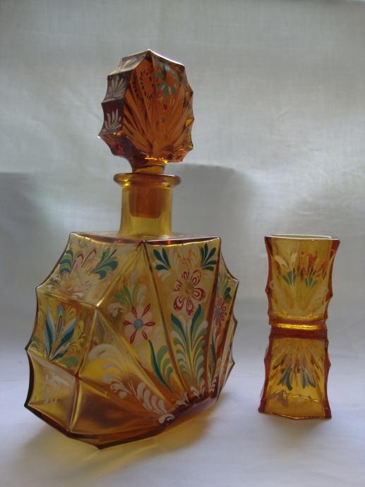 Art deco glass bottle and glasses hand painted- ART DEKO Boca i 6 čaša
