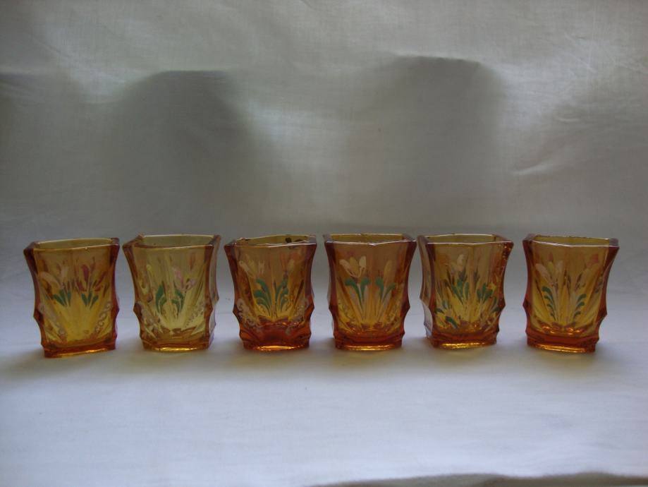 Predivni starinski set sa početka 20 stoljeća - oko 1920. ručno oslikano žuto staklo-puhano