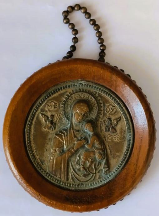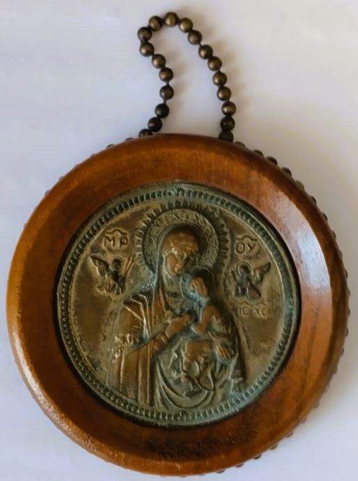 * drveno metalna ikona - Djevica Marija drži Isusa