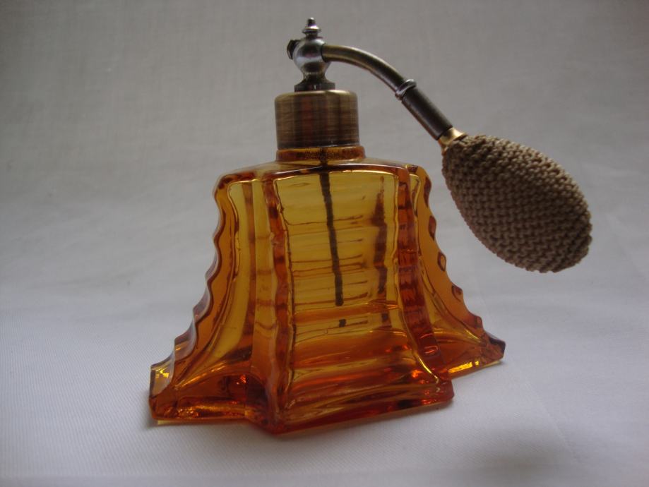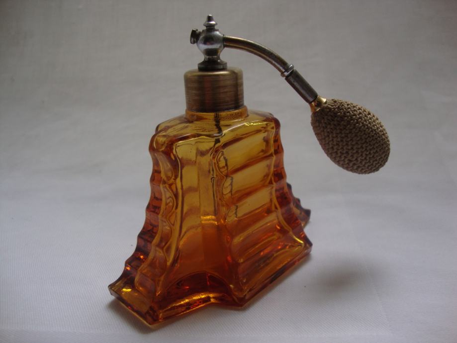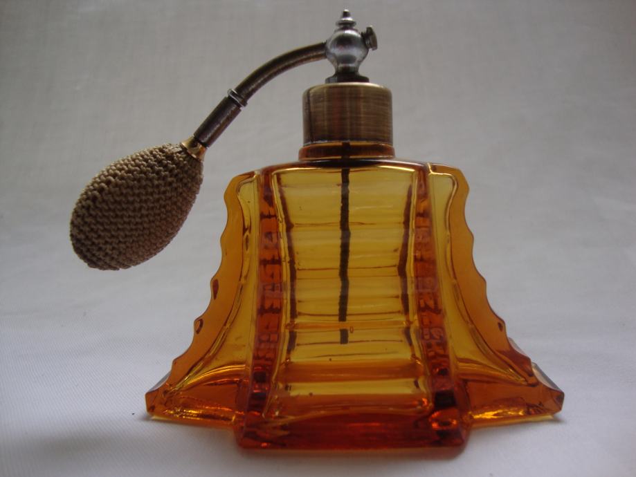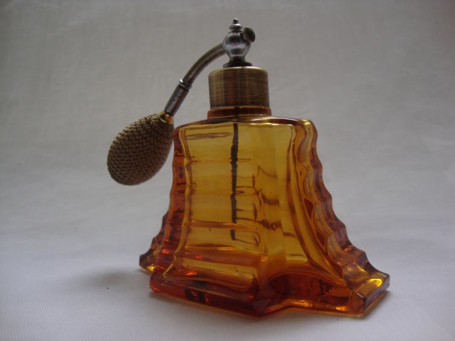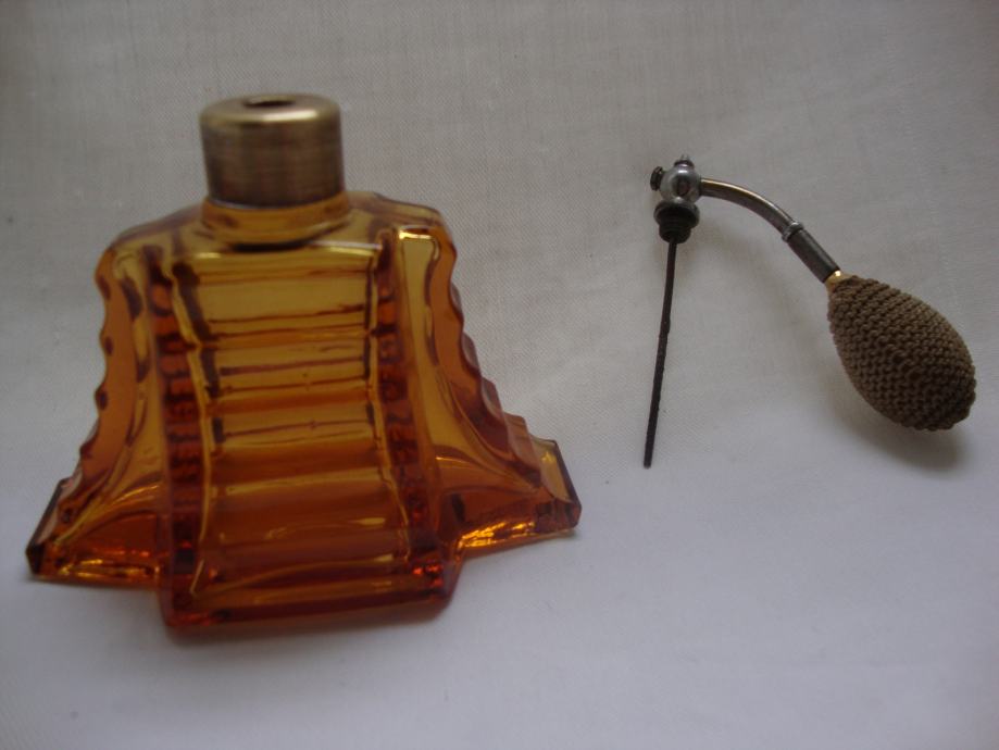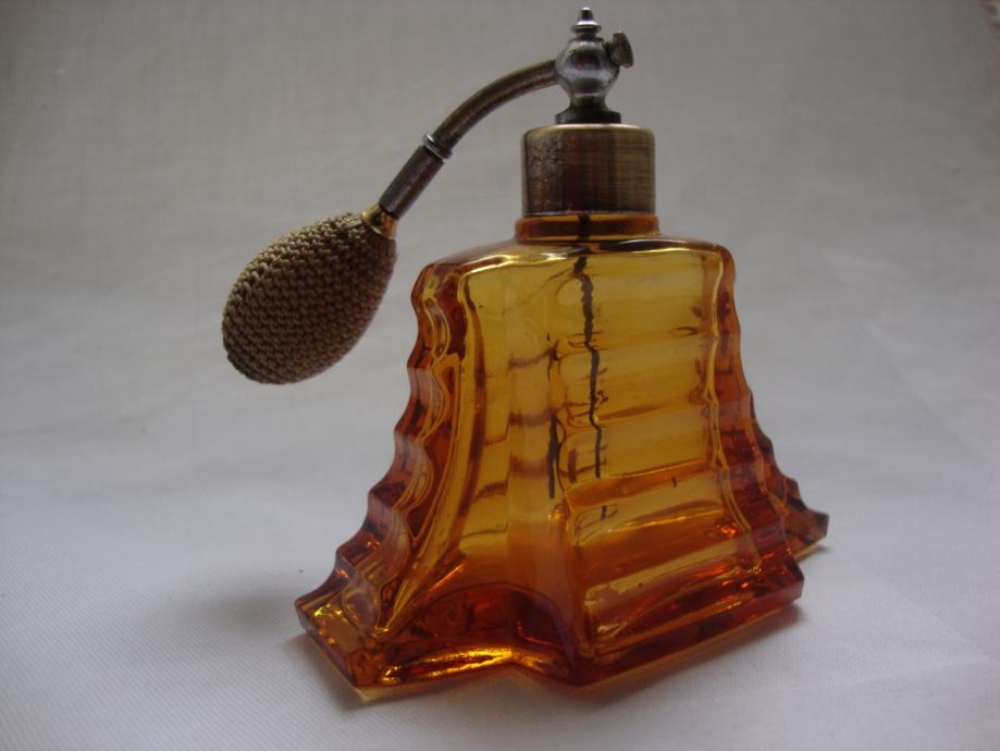 ANTIQUE PERFUME AMBER GLASS BOTTLE - ART DECO 1920.-PARFEMSKA BOCA