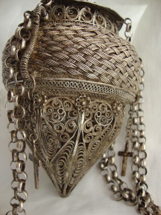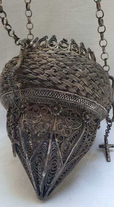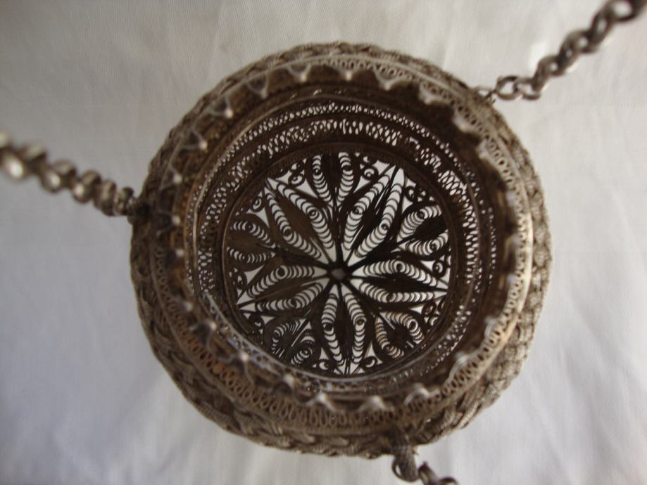 Antique silver filigree lamp-staro kandilo uljna lampa srebro filigran