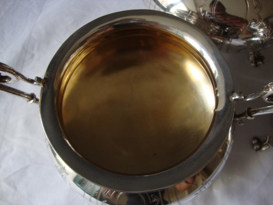 2.posude za šečer, visina vrh ručica 11 cm ,širina sa ručicama 19 cm -unutrašnjost posude je pozlata.