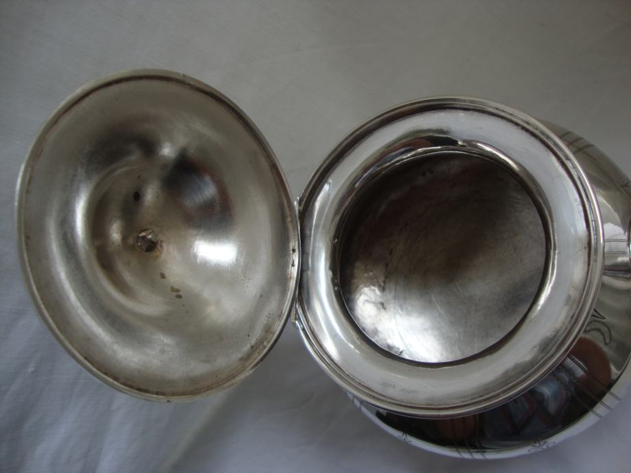 3.posuda za mlijeko ,visina vrha drške 13,5 cm ,širina sa ručicom 16 cm takođe unutrašnjost posude je pozlaćeno