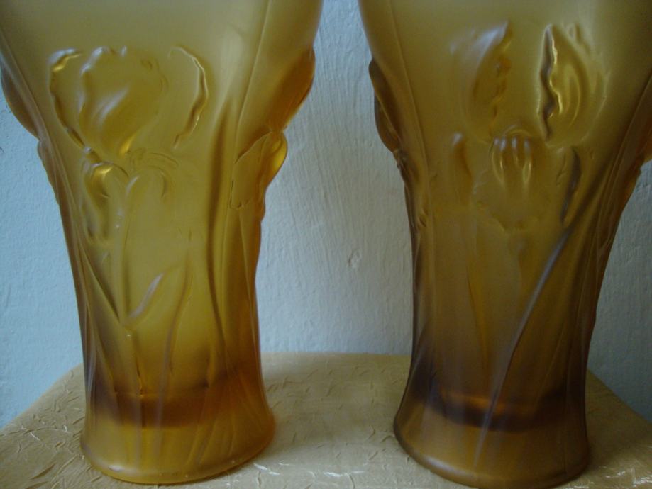 Brolac vaze su od jantar boje mutnog stakla satenskog sjaja u odličnom stanju, bez ikakvog osštečenja.