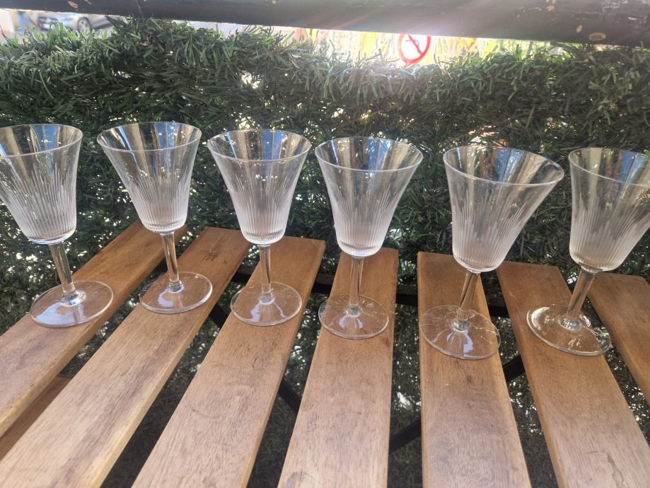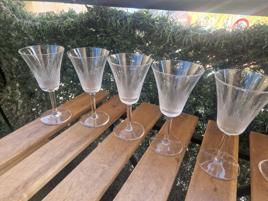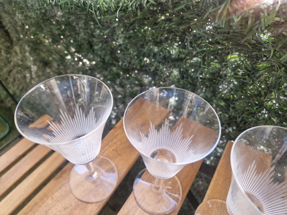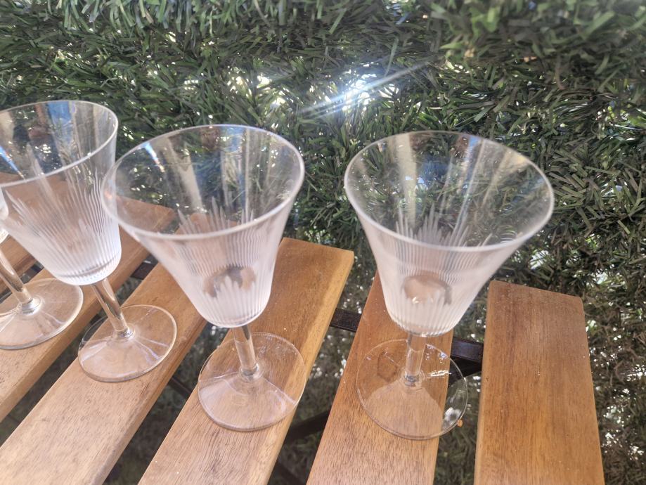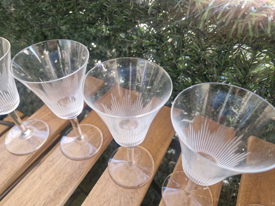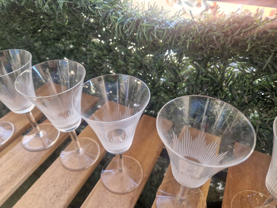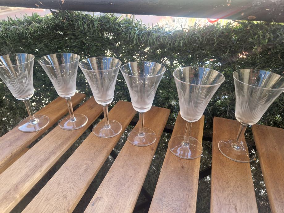 Prekrasno brušene i u perfektnom stanju svih 6 komada s obzirom da su nekorištene. Visina oko 14 cm, otvor oko 7 cm... stari, lijepi i elegantni rad ...cijena se odnosi na komplet od 6 čaša te je fiksna. Poruke na whatsapp