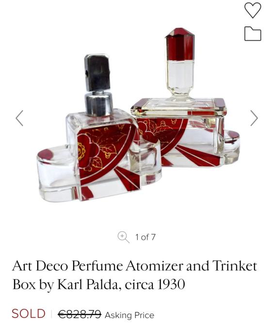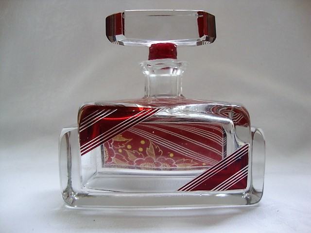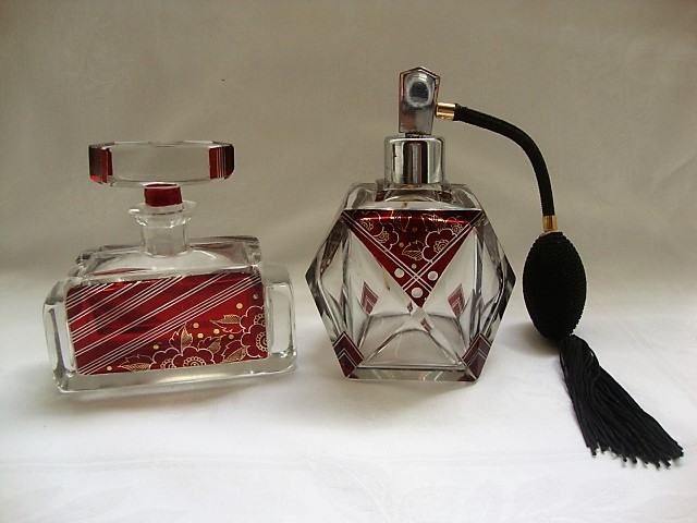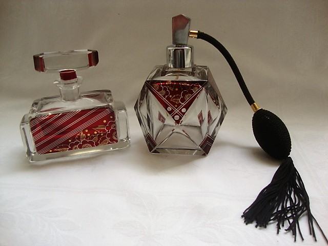 Zadivljujući set kristalnih parfemskih boca za parfeme iz 1930. godine autora Karl Palda . Bohemian Art deko