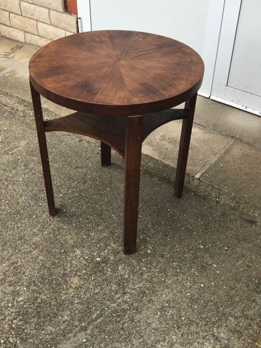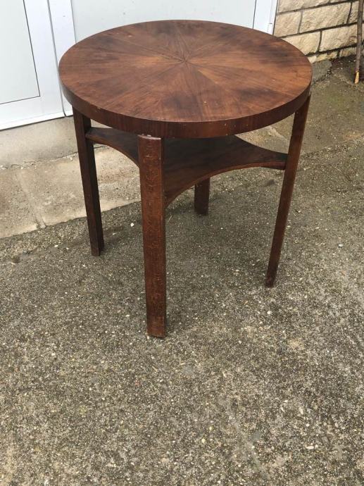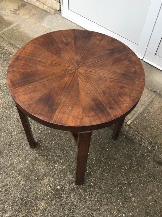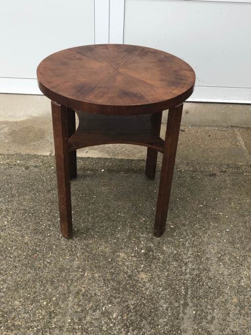 Art deco stolic napravljen od bukovog drva i orahovog furnira. Stolic je u dobrom stanju i restauracija je moguca po zelji kupca.
