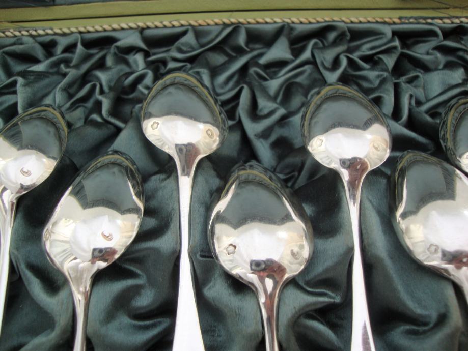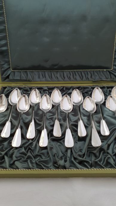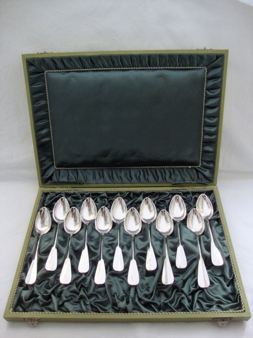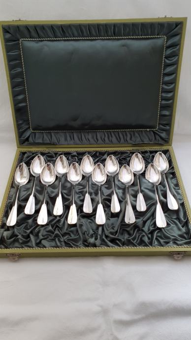 Srebrni komplet starinskih bečkih žlićica za čaj - kavu - kolače 12 komada u originalnoj kutiji starosti više od 120 godina u besprijekornom stanju