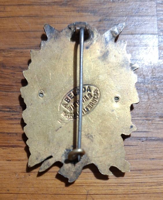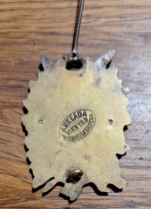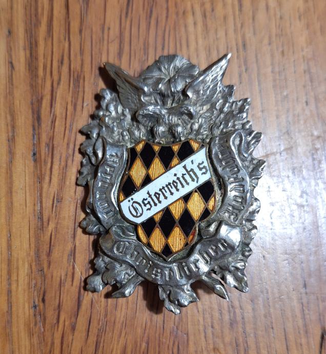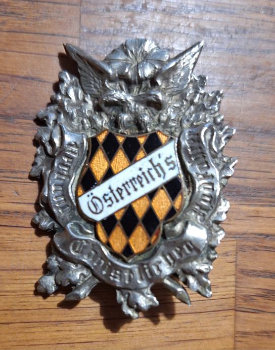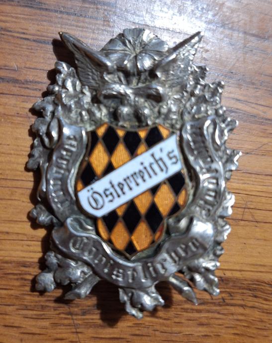 Austro-Ugarski kršćanski biciklistički savez, U štitu s narančasto-crnim dijamantima A. kršćanski biciklistički savez, U štitu s narančasto-crnim dijamantima, bijela etiketa s natpisom Österreich´s, u vrpci natpis: V ERBAND CHRISTLICHER RADFAHRER žig: Belada Wien kopča 37x52 mm-nemoguće naći u ovakvom stanju-slanje nakon uplate predmeta na račun