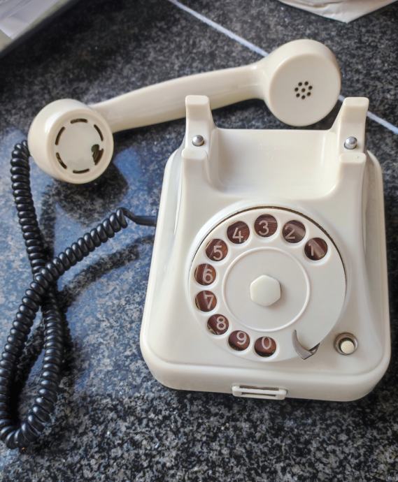 Stari kućni telefon s očuvanim bakelitnim kućištem vrlo rijetke bijele boje.