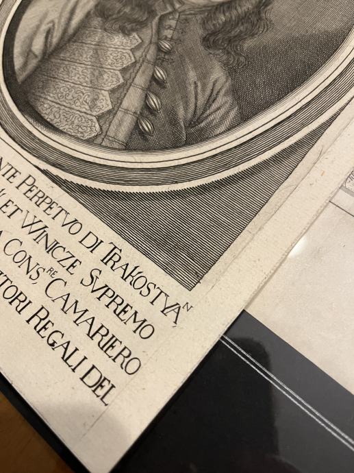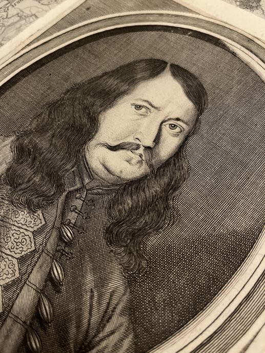 Prodajem originalni i vrlo rijedak bakrorez grofa Nikole II. Draškovića iz otprilike 1660. godine [gravirao] Cor. [Cornelis] Meyssens; [prema crtežu Adriaena van Bloemena].