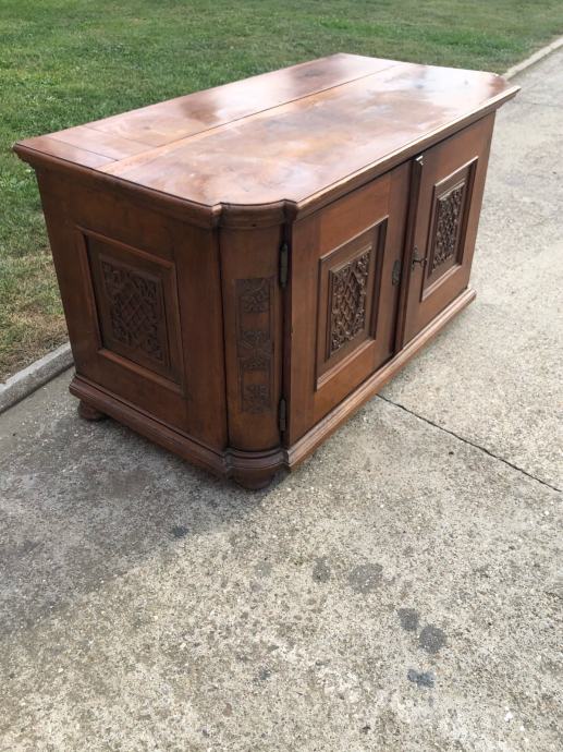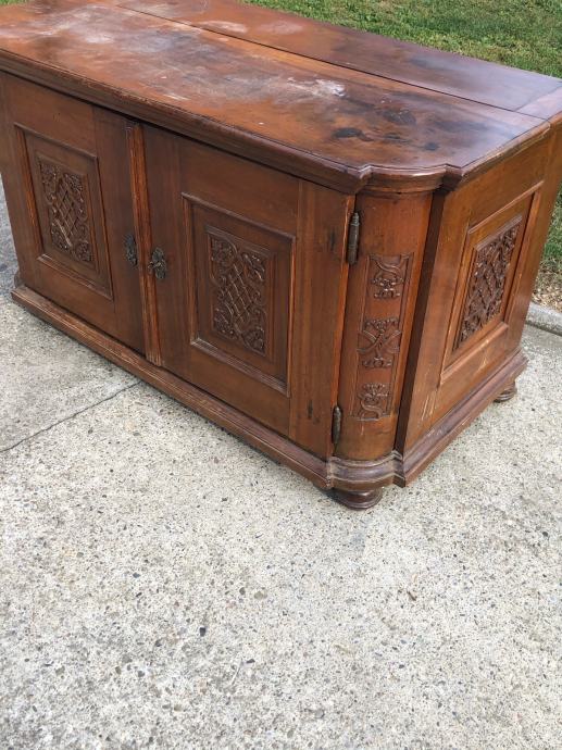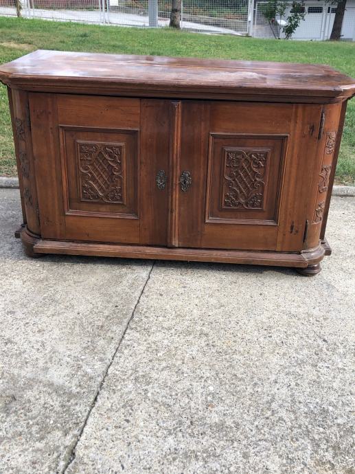 Komoda u vrlo dobrom stanju iz razdoblja barok, napravljena od masiva orahovog drva sa prekrasnim rezbarijama.