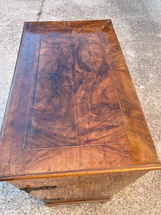 Komoda je restaurirana prije vise vremena te je tada rastavljena, furnirana sa unutarnje strane, promjenjena brava i stavljena nova leda.