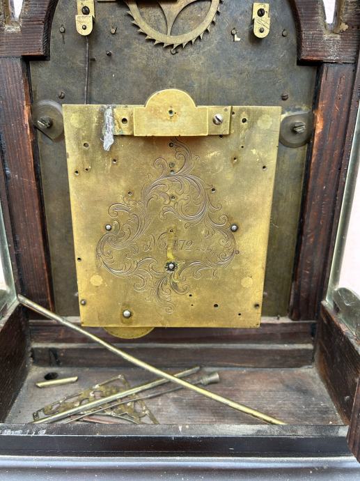 Barokni komodni/stolni sat u dobrom stanju. Nedostaju kazaljke i dio mehanizma. Sat je napravljem u 18stoljecu.